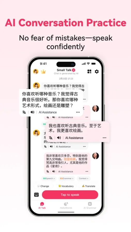 With personalized AI conversation courses, fun interactive exercises, real-world scenario simulations, gamified vocabulary practice, and AI-powered grammar correction, you can easily master essential Chinese for daily conversation, business, and travel.