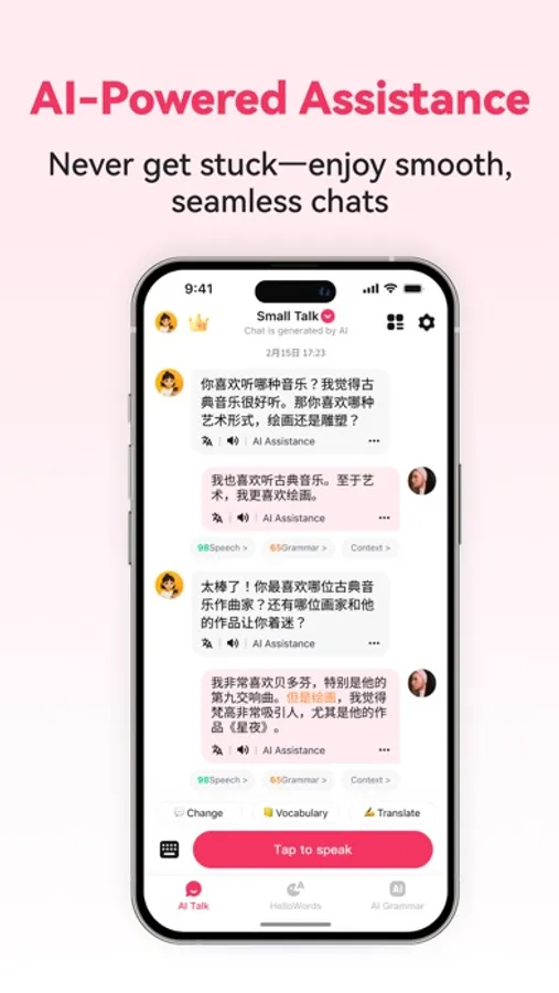 >>Real-Time AI Chat: Practice speaking like with a real person, with instant grammar and pronunciation correction