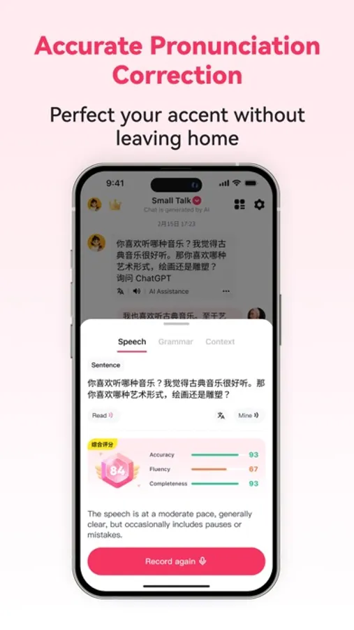 >>Precise Pronunciation Evaluation: Multi-dimensional assessments help you speak authentic Chinese without going abroad
