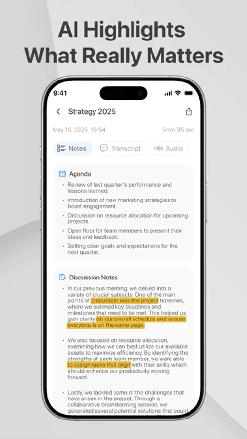 Just tap to record. Your voice is transcribed instantly, then analyzed through multiple AI-powered steps — from speech recognition and speaker identification to key point extraction and summary generation. What you get is more than just a transcript — it’s a refined, searchable memory of what was said.