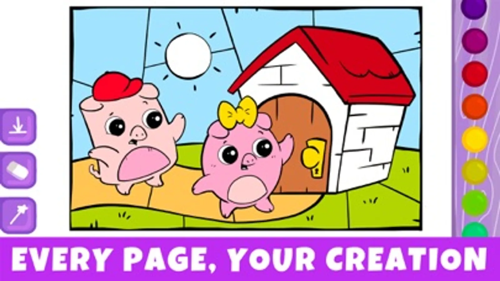 - Multiple colouring modes: pixel painting, tap-to-fill (fill bucket) and free drawing let children express themselves in their favourite style.