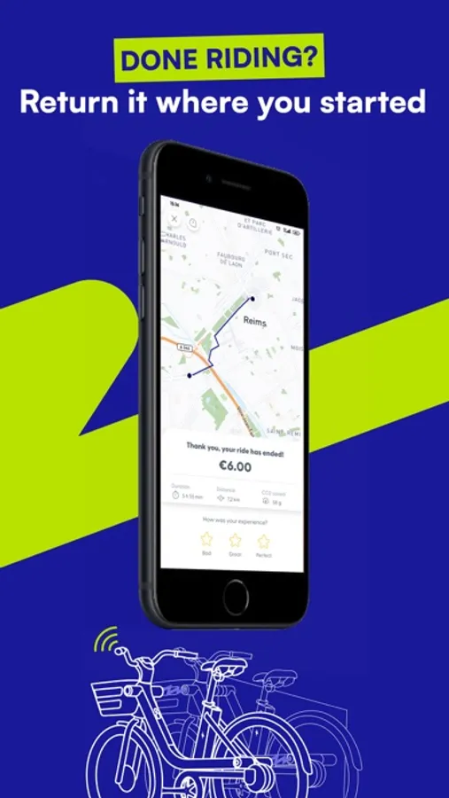 Heading to work, school, or an appointment? Park the bike in a safe spot that doesn't block the way — ideally a bike rack — and lock it through the app.