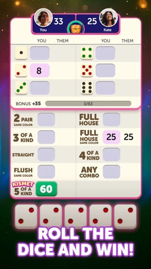 Discover a fresh twist on classic dice play! Challenge friends, join tournaments, and unlock achievements as you master the strategic world of KISMET!