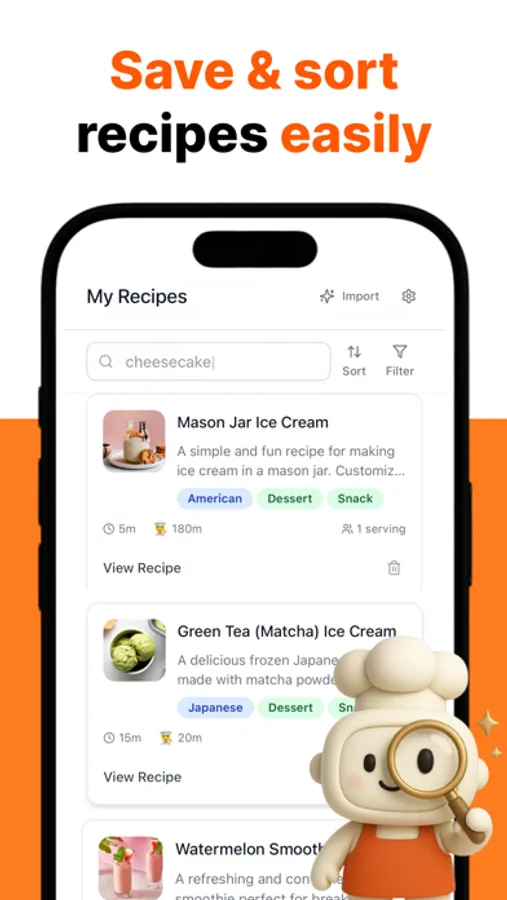 • Snap photos of recipe cards or cookbook pages for automatic import
