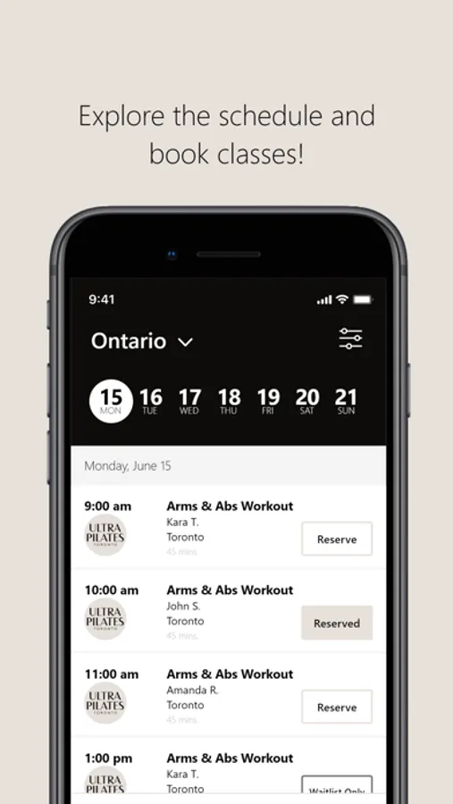 Filter classes by type to find the perfect fit for your routine.