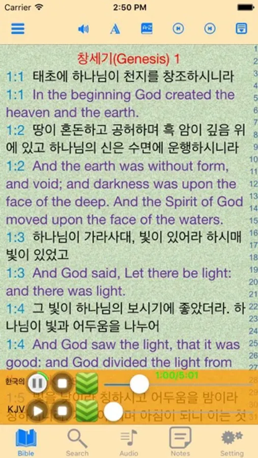 Holy bible in Korean and in English, you can learn bible with the two languages.