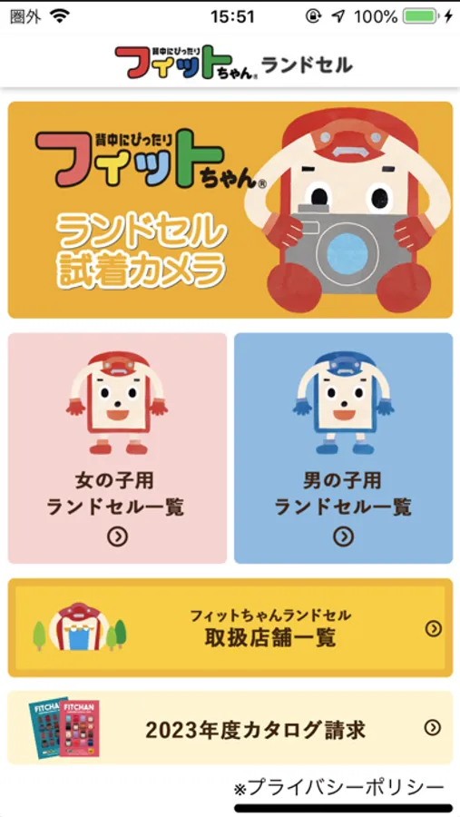 「フィットちゃんランドセル試着カメラ」を使えば、お近くにフィットちゃんランドセル取扱店がなくてもフィットちゃんランドセルを背負った写真を撮ることができます!