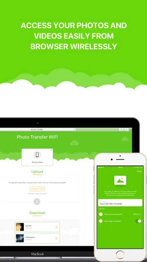 •••Transfer Camera Roll content wirelessly and without hassle. Save your photos and HD videos to iDevices or any device or computer connected to the same local network•••