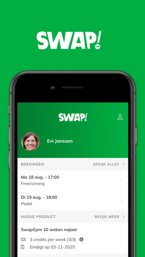 Download de SwapGym GO app voor het eenvoudig boeken van sessies en het updaten van jouw profiel. Blijf op de hoogte van het laatste nieuws en ontvang push notificaties met laatste berichtgeving.
