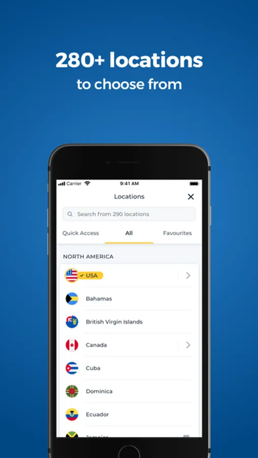 * The "Favourite Server" feature allows you to mark any VPN server or country as "favourite" - saving you time searching for your preferred servers