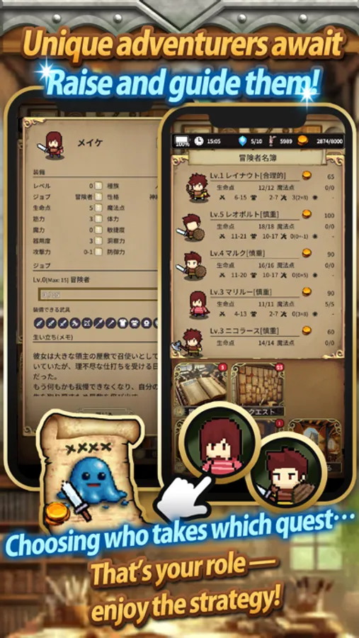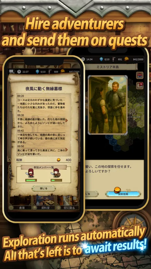 where you hire adventurers, fulfill quests, gather funds, and expand your base.