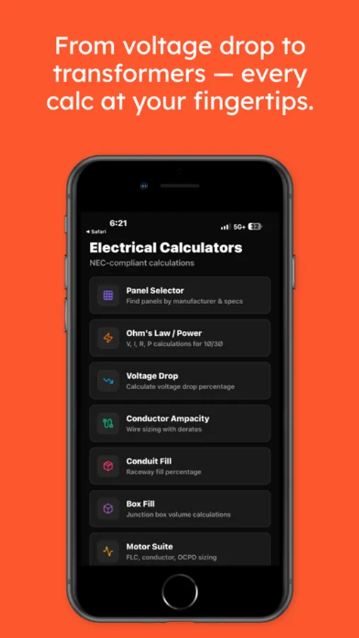 Built for electricians, by electricians, AmpVault gives you instant access to the calculations, safety tools, and productivity features that keep every job safe, efficient, and compliant. Whether you’re in a basement, substation, or a remote solar field, AmpVault works completely offline.