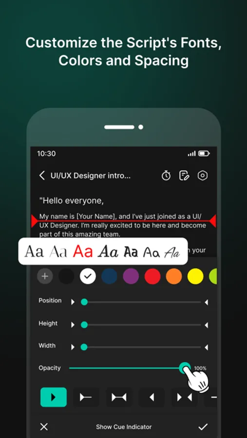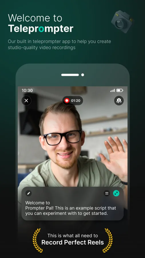 Read your script next to the camera, so you look natural and confident—no memorizing required.