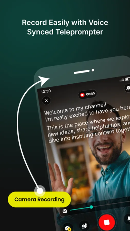Create flawless, professional videos in seconds with Teleprompter Video Maker — your all-in-one tool for recording with confidence and clarity. Whether you're vlogging, giving presentations, recording speeches, or creating social media content, our app keeps your eyes on the camera and your message on point.