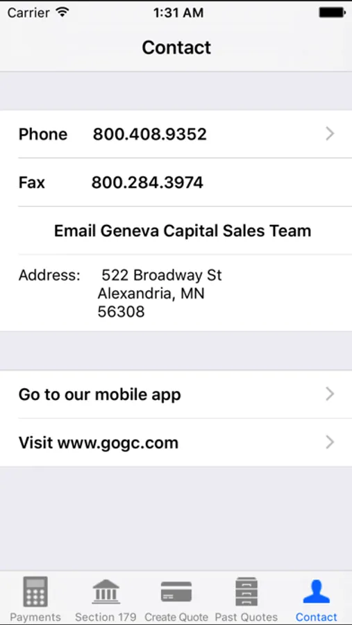 The Geneva Capital Tools app puts our best financing tools at your fingertips. Calculate an estimated payment range, see how much your customer could save at tax time, create & email a quote directly from the app - as well as keep track of your past quotes, access our online credit application & mobile website, or contact your Geneva Capital rep from within one convenient app.