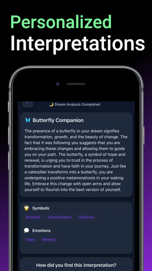 • Receive detailed analysis of dream symbols, emotions, and meanings