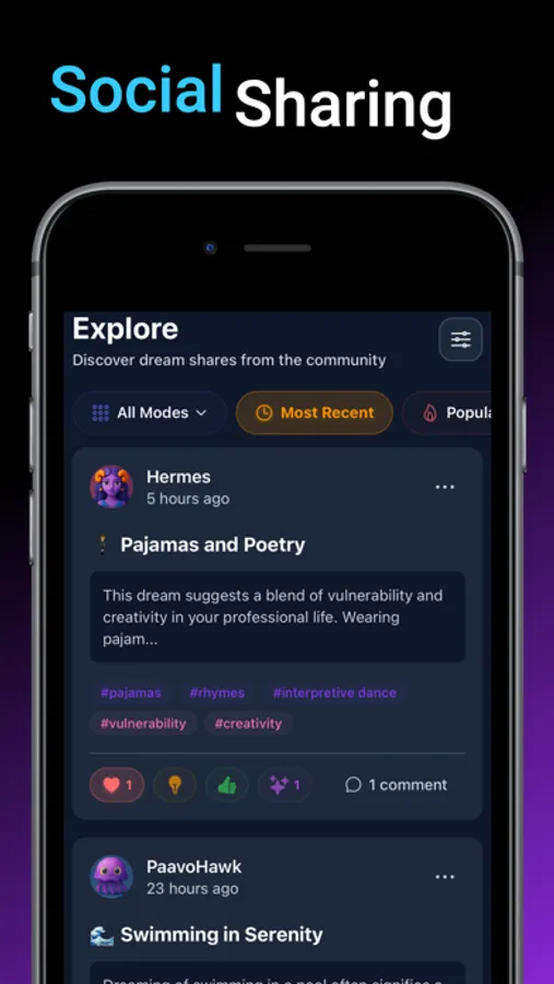 Note: This app is for entertainment, self-reflection, and social connection purposes. Dream interpretations are not medical advice.