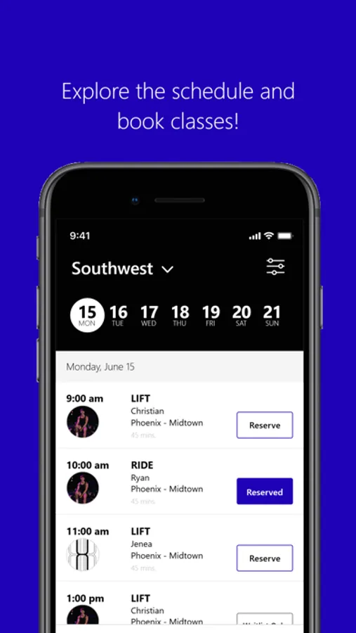 Book your class reservations with ease. Keep track of your upcoming classes and manage your schedule to stay organized and committed to your fitness goals.