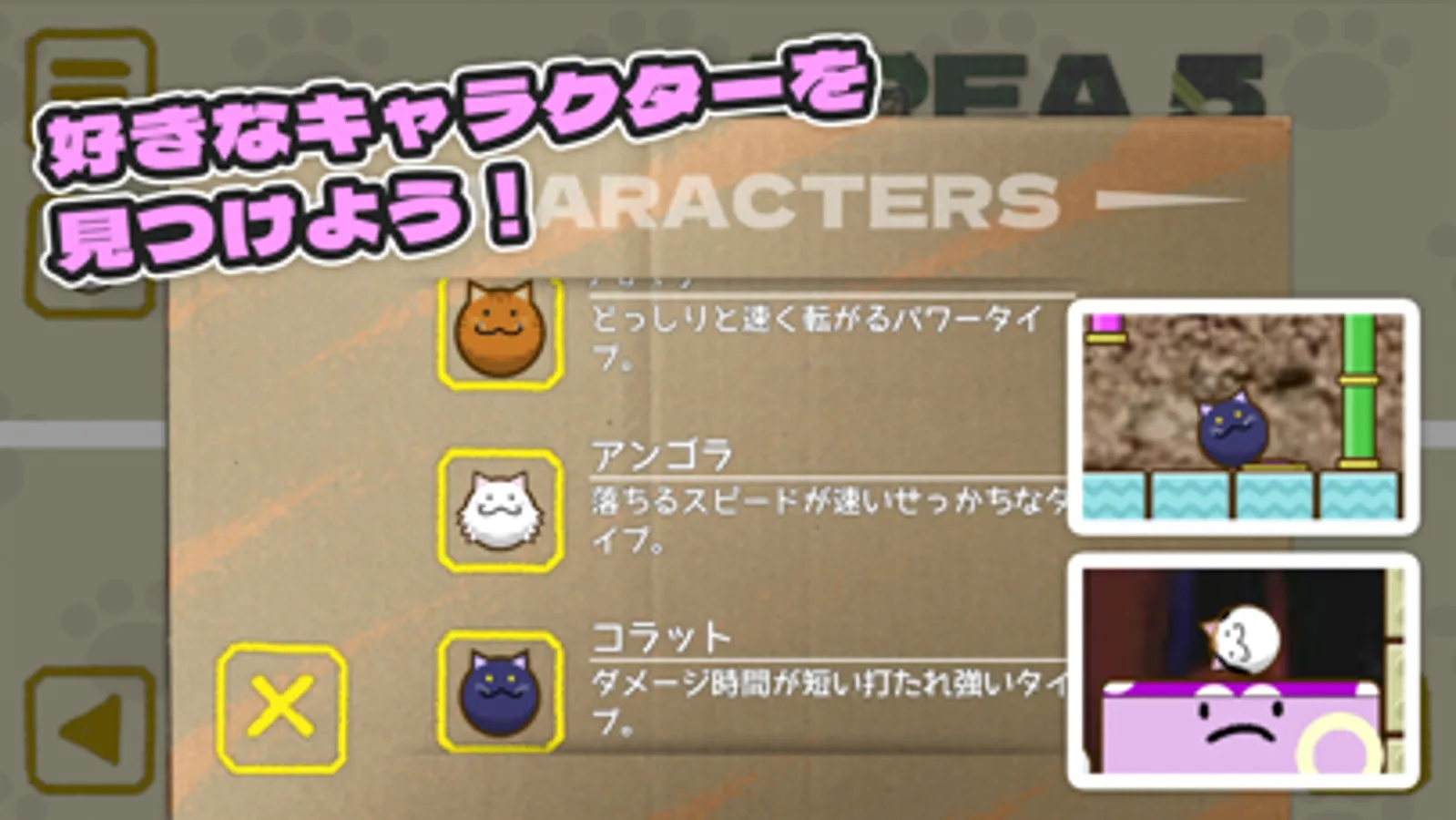 The playable character “Tamaneko” multiplies as you progress. Each version has unique traits, which can sometimes give you an edge in certain stages.