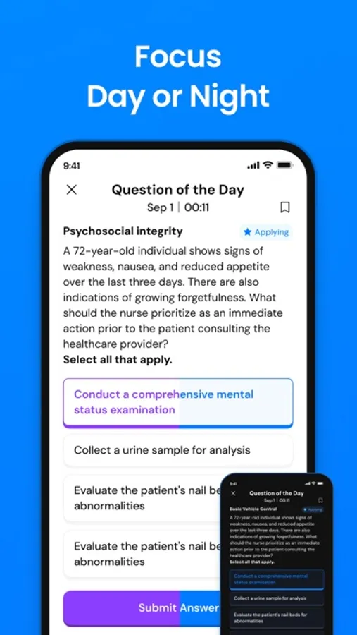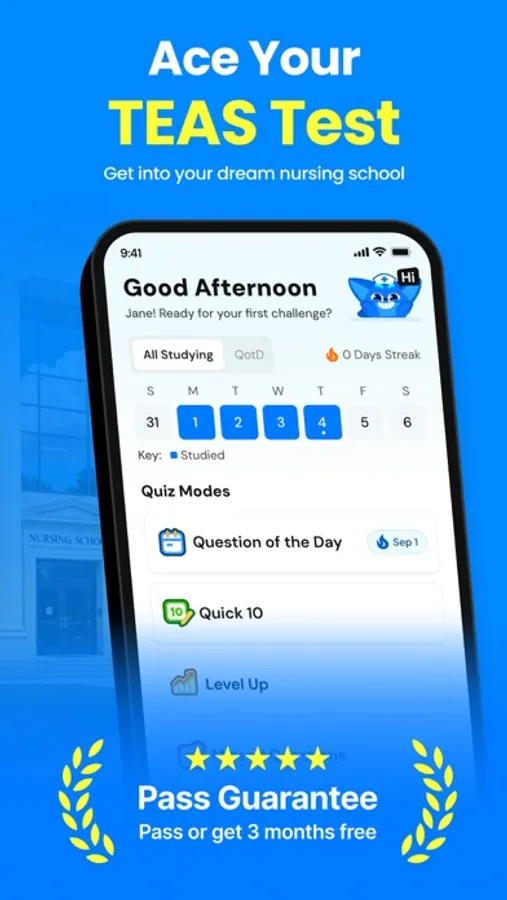 6. All in One App: TEAS practice test, question bank (Qbank), study guide, TEAS review, Question of the Day, reminders, streaks, build‑your‑own quiz, timed & untimed modes, formula & grammar cheat sheets.