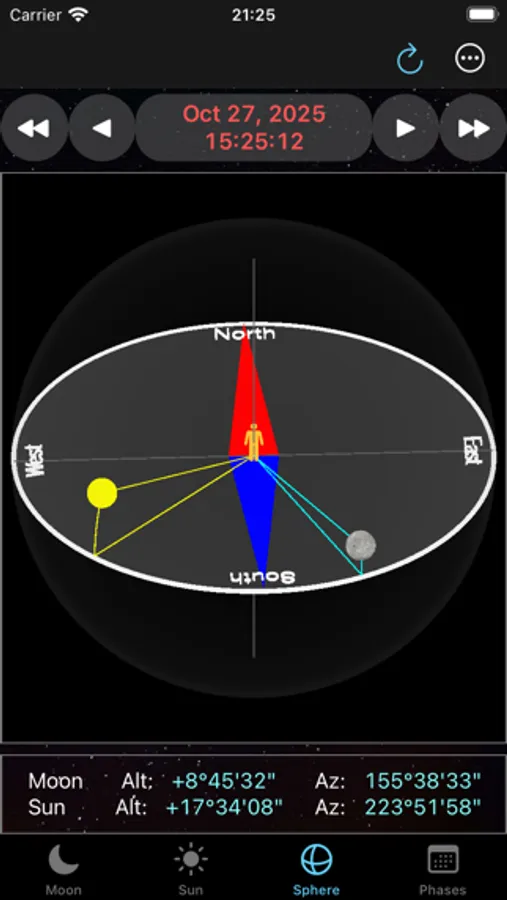 - Interactive Sky Sphere: A simple, intuitive sky view shows the real-time positions of the Sun, Moon and major planets relative to you.