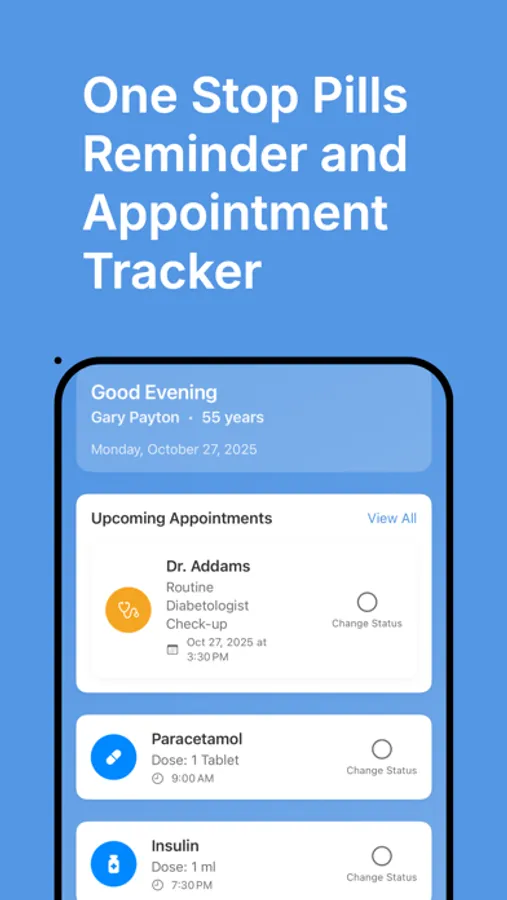Perfect for seniors managing multiple medications, caregivers tracking family health, patients with ongoing treatments, or anyone who wants to take control of their wellness routine.