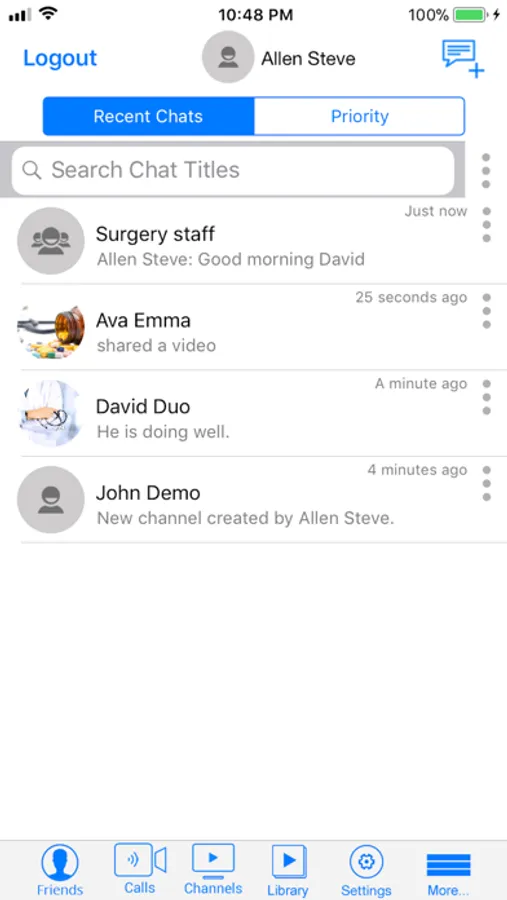 TELEHEALTH real-time Video/Audio calls with up to 50 people.