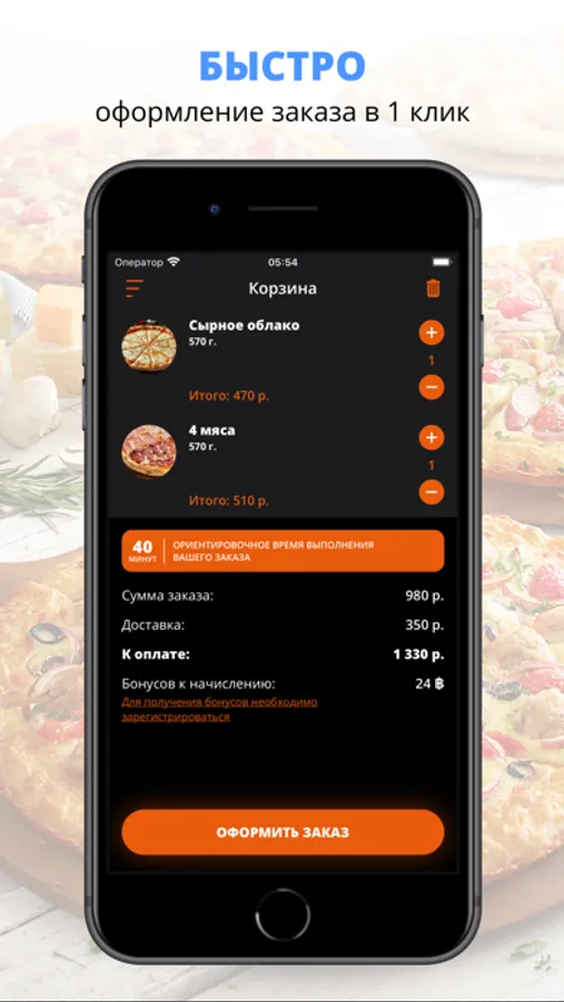 Скачивайте наше приложение, оформляйте заказ и наслаждайтесь любимой едой, где бы Вы ни были! Приятного аппетита!
