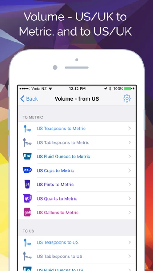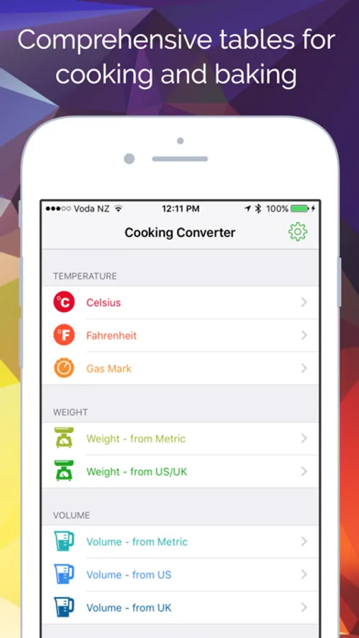 The Cooking Converter app provides tables for unit conversion instead of forcing you type in numbers; especially useful for avoiding the tedious task of converting multiple values. To use: