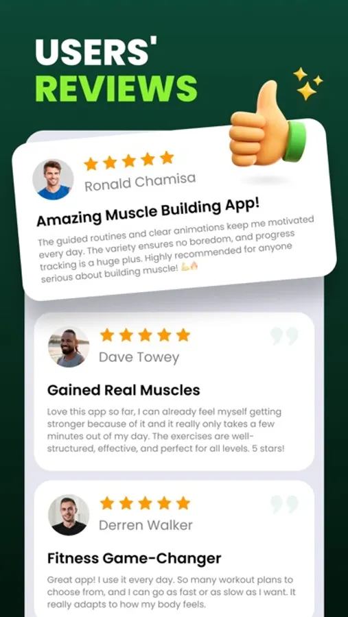 Muscle Builder meets every fitness need. Explore 600+ guided exercises and 200+ expert-designed workouts. Achieve your goals with smart fitness plans, from intense gym sessions to flexible home workouts. Take on 28-day challenges for focused training results or complete quick daily workout. Feel free to begin your fitness plans with bodyweight exercises or equipment-based workouts. Also, you can switch between targeted core sessions, strength and stretching training, chair exercises at home, and more to vary your workout. This smart fitness app designs personalized workouts for men and women, helping everyone—from beginners to pros, young or senior—develop lasting fitness habits and stay consistent.