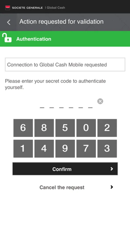 The services accessible on Global Cash mobile must be subscribed in advance as part of your Global Cash contract. For any questions, contact your usual bank advisor.
