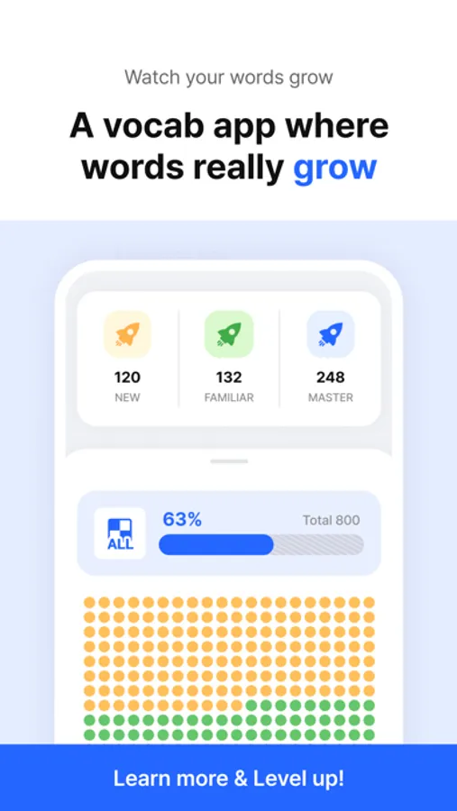 Instead of leveling up the learner, Voeing levels up each individual word.