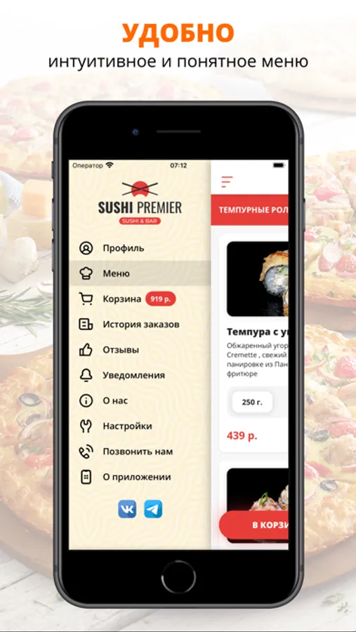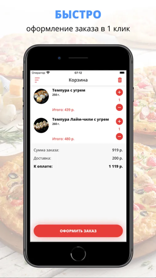 Скачивайте наше приложение, оформляйте заказ и наслаждайтесь любимой едой, где бы Вы ни были! Приятного аппетита!