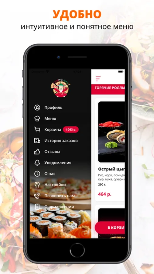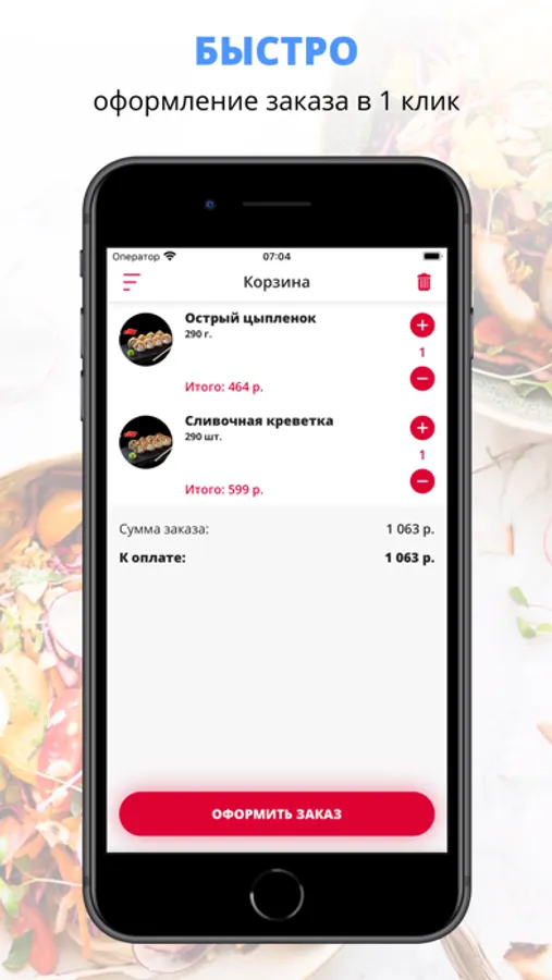 Скачивайте наше приложение, оформляйте заказ и наслаждайтесь любимой едой, где бы Вы ни были! Приятного аппетита!
