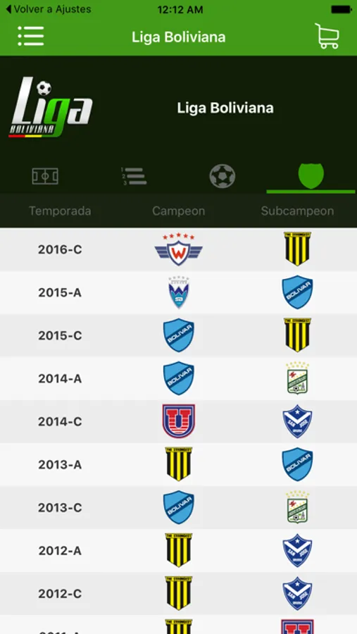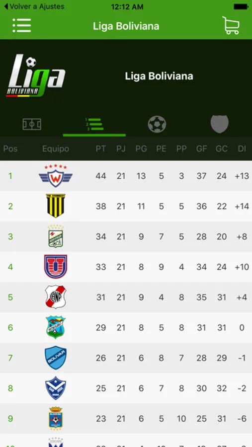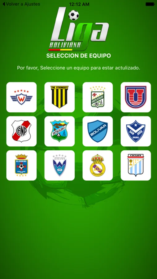 Liga de fútbol boliviana app, le ofrece informacion acerca de los equipos que conforman la liga boliviana, escoja su equipo de sus preferencia y podra ver un resumen de su equipo.