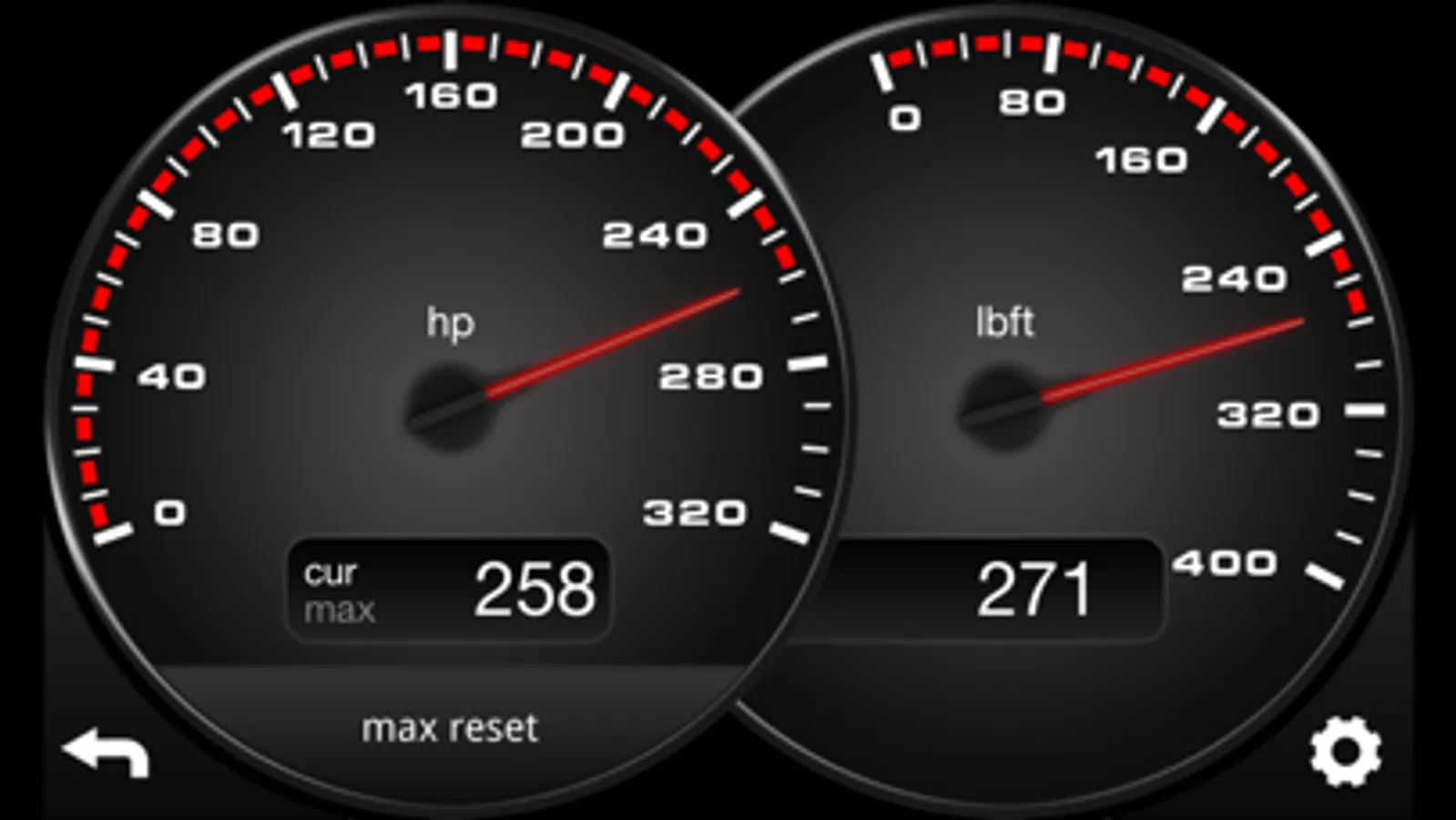 Shows real time engine power and torque