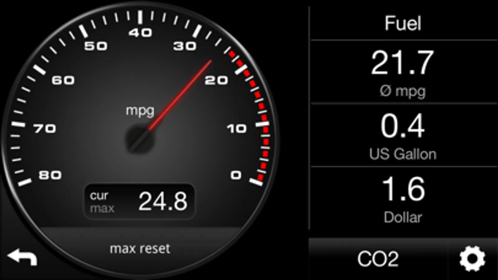 Shows fuel consumption and CO2 emission including fuel cost