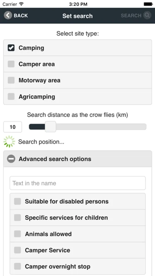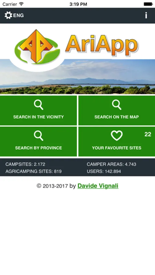 AriApp is based on a database of campsites, camper areas (also on motorway routes) and agricamping and was conceived for people travelling in any part of Italy and who want a quick way to find a place to spend the night in a tent or their own camper where there are certain standards of comfort and services. For each of these the main information useful to travellers is shown.