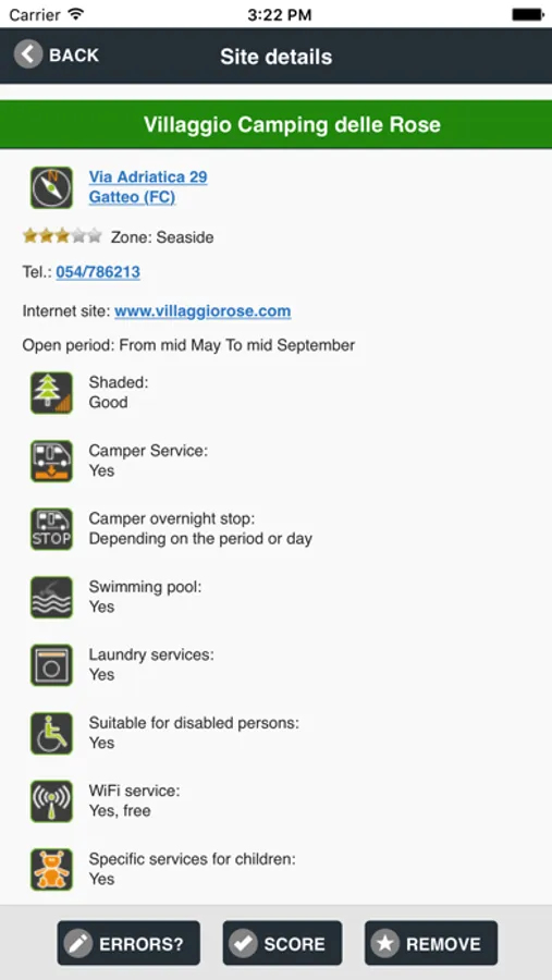 For all these reasons, AriApp can also be of great help in choosing a place for your holiday beforehand thanks to the complete database and the easy search: if there is an internet site only this is shown and it provides further information on the site itself. Then if you click on the telephone number (almost always given), it opens a preset telephone line for quick contact.