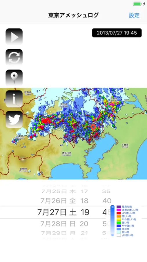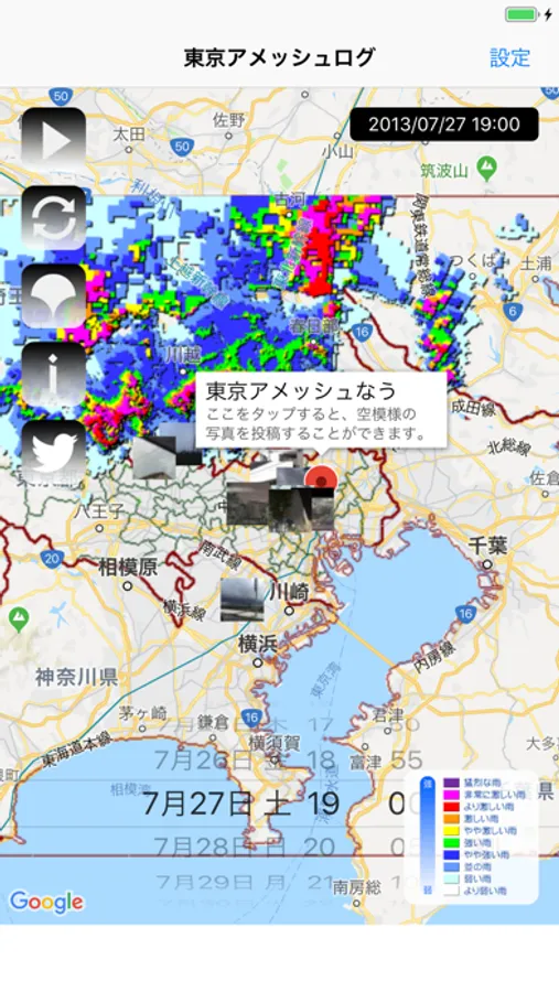 ・Twitterへ雨模様を投稿できます。