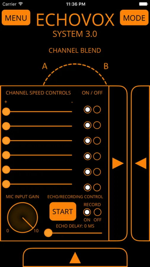 EchoVox is a real-time amplified recording system used to create a bed of random chaotic noise using random phonetics, microphone input and a natural loop recording echo. Delay time can be set from anywhere to 0-10 seconds. This means what you are hearing is the actual audio being recorded to disk in real-time, as it happens.