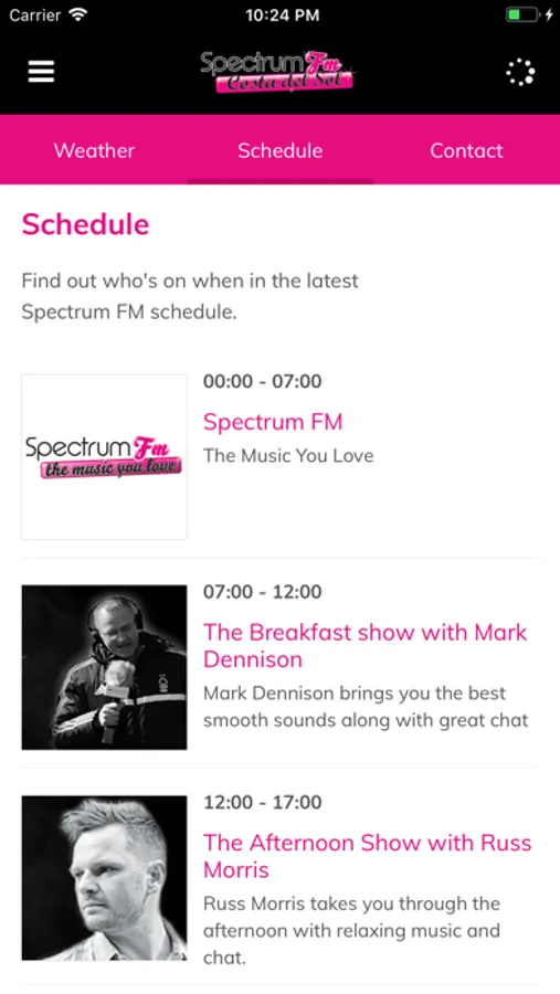 Spectrum FM is Spain's biggest English speaking radio station, playing the music you love and updating you on world and local news. Everything the English-speaking community needs to know in the popular regions of Costa del Sol, Costa Blanca, Costa Almeria, Costa Calida and the major cities of Marbella, Algeciras, Murcia, Alicante and Benidorm.