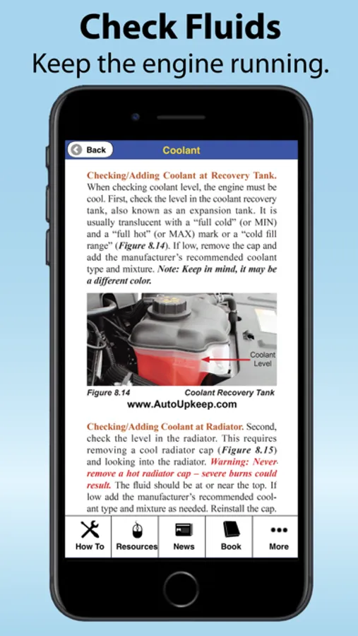 The publisher, authors, www.rollinghillspublishing.com, www.autoupkeep.com, reviewers, and those associated with the text/app do not warrant or guarantee any procedure, process, products, or websites presented in the text/app. Extensive effort has been made to ensure accuracy in the text/app and illustrations throughout the book/app. However, due to the vast number of automotive manufacturers and related products, the reader should follow all procedures provided with the vehicle or by the product manufacturer. The book/app is sold with the understanding that the publisher, authors, www.rollinghillspublishing.com, www.autoupkeep.com, reviewers, and those associated with the text/app are not engaged in rendering any specific mechanical, safety, diagnostic, legal, accounting, or any other professional advice. The reader assumes all risks while following activity procedures, is warned to follow all safety guidelines, and should avoid all potentially hazardous situations. The publisher, authors, www.rollinghillspublishing.com, www.autoupkeep.com, reviewers, and associates shall not be liable for damages to vehicles, their components, or injuries to individuals using or relying on this material.