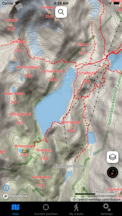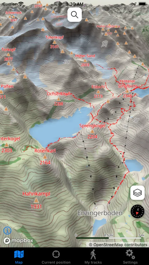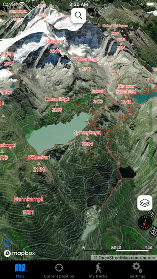 This application displays a detailed offline topographical map of Austria with hiking trails, points, hills, etc. You can view it in 2D and 3D mode, now also with a satellite base map. You can record your tracks and the application will then render them on the map, calculate various statistics and height profiles. Recorded tracjs are saved in GPX format and you can easily transfer them to your computer.