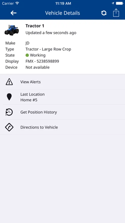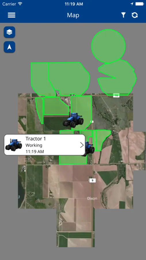 Monitor your entire fleet from any location with a smartphone or tablet. The Connected Farm™ Fleet app is a powerful management tool for viewing live equipment GPS locations and current status information in order to increase fleet efficiency and productivity. Status information includes whether the vehicle is moving, working or stopped. Fleet managers can view alerts when a vehicle travels into a restricted zone, is turned on or off, or if it is operating during curfew hours. If a vehicle needs onsite assistance, the app provides turn-by-turn directions from your current position.