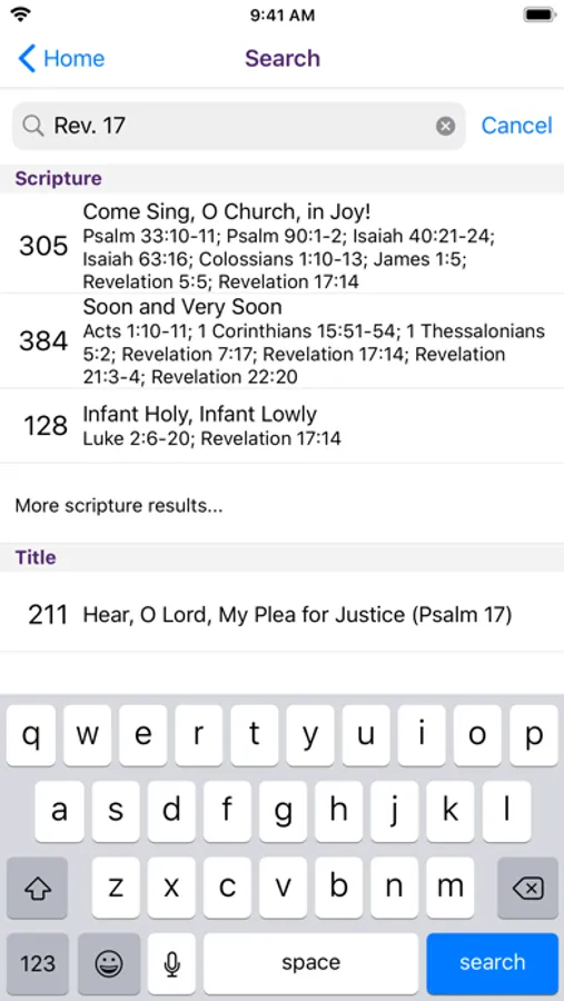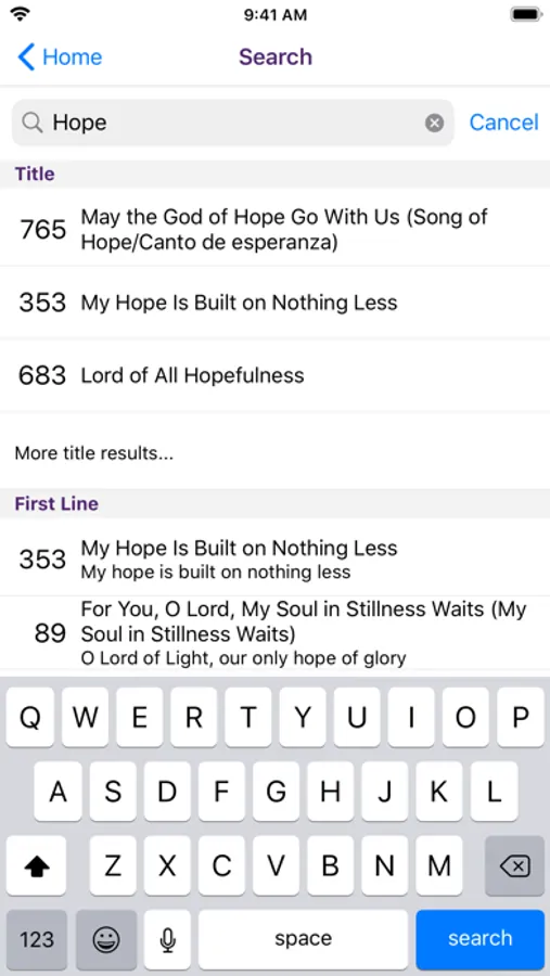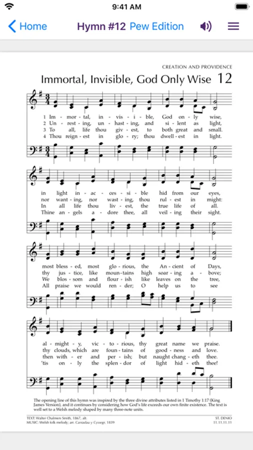 Glory to God is an iPad edition of the Presbyterian hymnal Glory to God, with razor-sharp music, powerful search capabilities, sample piano recordings of hymns, interesting information about hymns and their authors, and the ability to access several different versions of hymns including pew, accompaniment, large print, projection, lead sheet, and instrumental (strings, brass, and woodwinds).