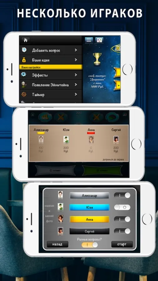 Викторина для iPhone & iPad. Для того, чтобы выиграть главный приз, т.е. миллионы игровых рублей, необходимо правильно ответить на 15 вопросов из различных областей знаний на сложном уровне игры.