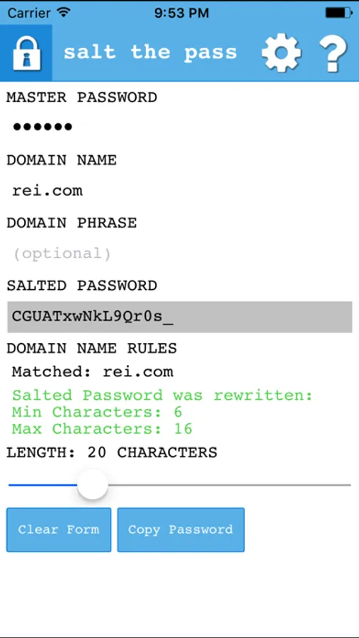 SaltThePass is a password generator that will help you generate unique, secure passwords for all of the websites you visit based on a single Master Password that you remember.
