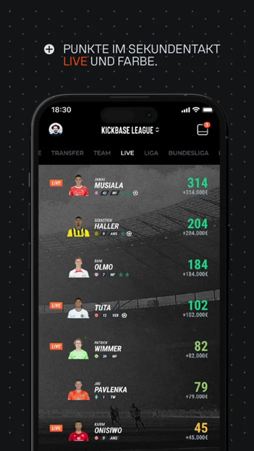 Caution, Pure Adrenalin: Follow each Bundesliga game in real time and each player auction with our Live Match Day function. Chat with your friends via our live-chat function. Everything which happens on the turf directly affects your players!