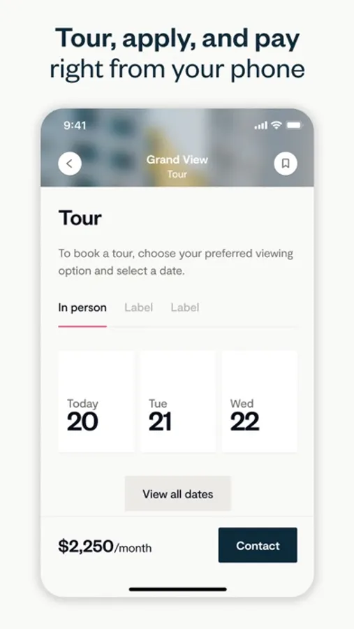 Request virtual, 3D, or in-person tours in one click. Submit applications through the app and say goodbye to paperwork once and for all.